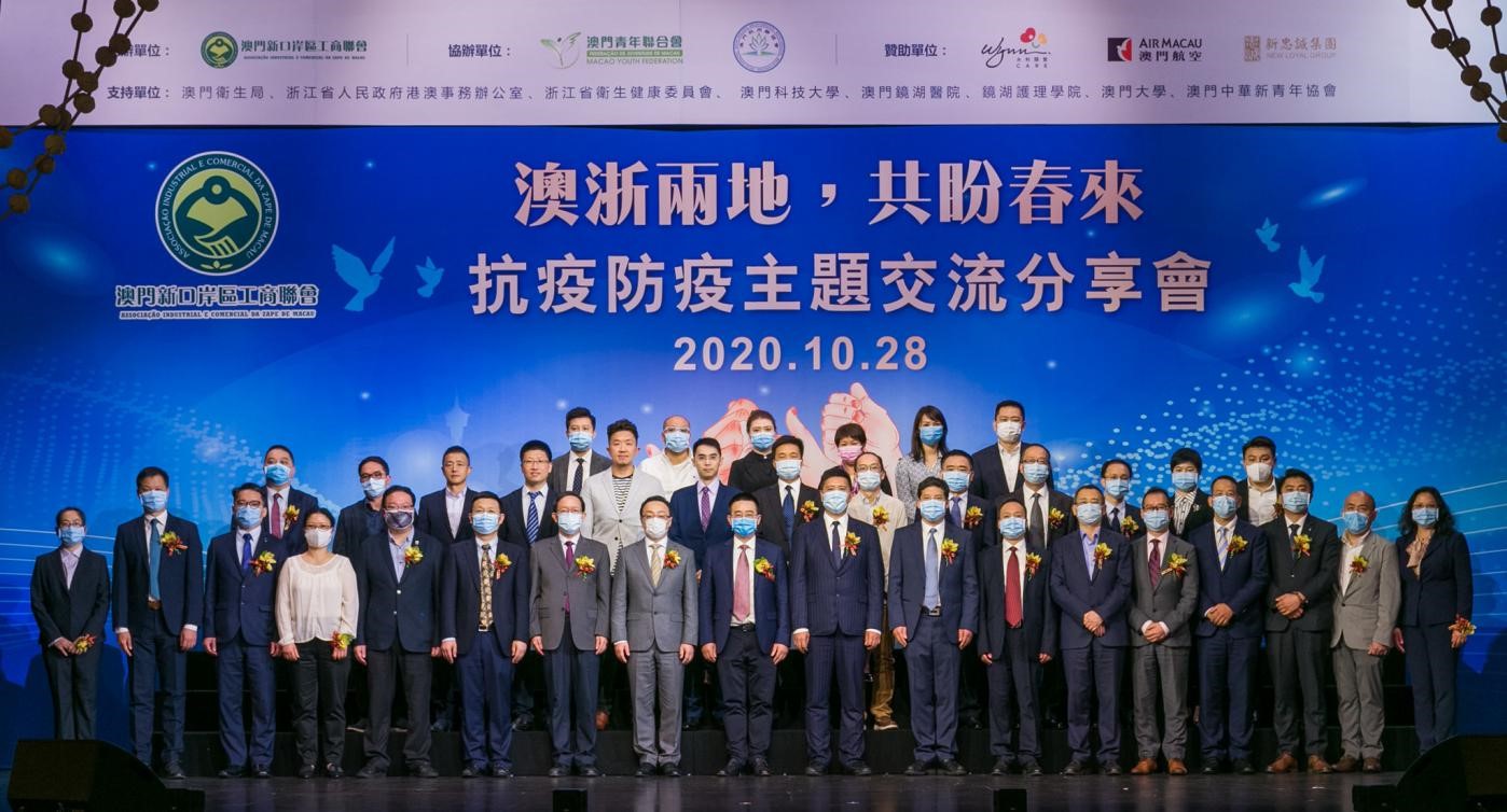2020年10月28日澳門新口岸區工商聯會主辦,澳門青年聯合會、澳門杭州聯誼會協辦,“澳浙兩地,共盼春來”——抗疫防疫主題交流分享會舉行,邀請澳門衛生局代表,醫護、科研及施援人員主講。