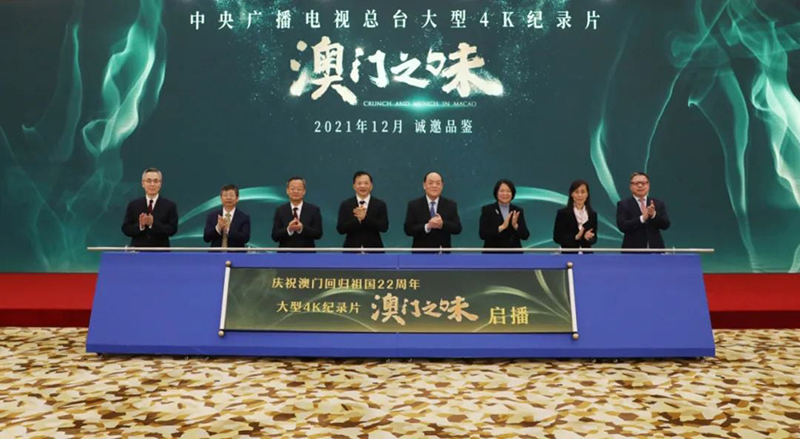 为庆祝澳门回归祖国22周年,由中央广播电视总台与澳门特别行政区联合制作的大型4K纪录片《澳门之味》,11月24日在广州举行启播仪式。澳门特别行政区行政长官贺一诚,中宣部副部长、中央广播电视总台台长兼总编辑慎海雄共同为节目开播启幕。