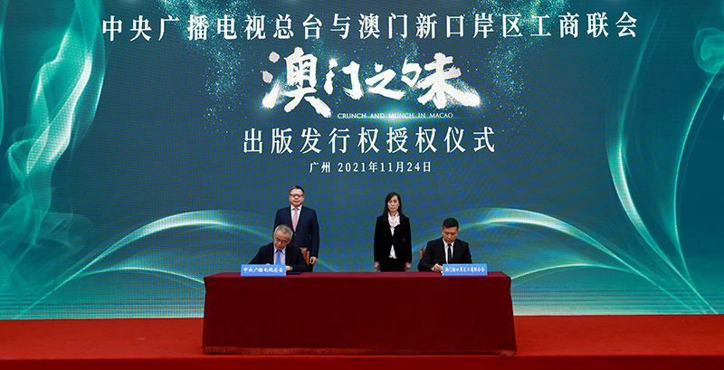 启播仪式上,总台与澳门新口岸区工商联会会长胡达忠签署了《音像制品、图书出版发布许可证书》。总台授权澳广视播出大型4K纪录片《澳门之味》,并配套发行相关图书、音像制品和文创产品等。中央广播电视总台编务会议成员姜文波、彭健明、王晓真,总台和澳门特别行政区、澳门中联办等相关部门负责人等参加活动。