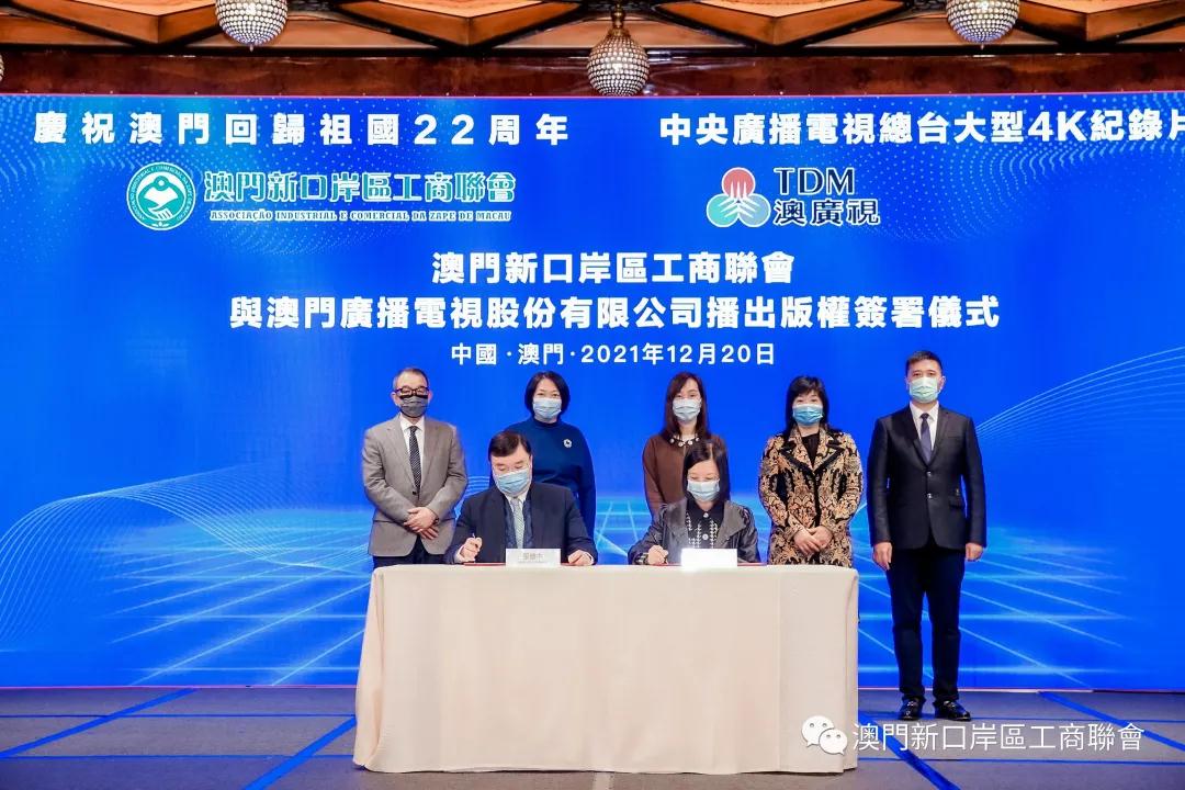 在活动主礼嘉宾的见证下,澳门新口岸区工商联会作为总台《澳门之味》音像制品、图书出版发行的海外受权方,与澳门广播电视股份有限公司、澳门文化公所分别签署了电视播出及联合出版书籍的授权协议。