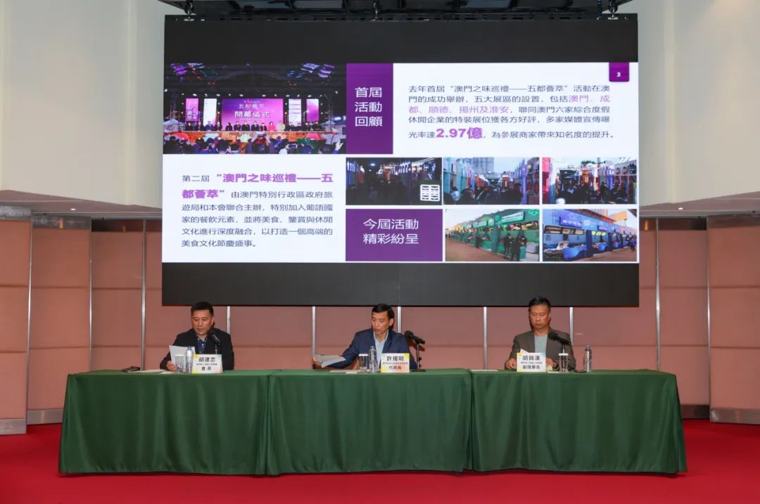 澳门之味巡礼由澳门旅游局和澳门新口岸区工商联会联合主办,澳门六家综合度假休闲企业合办。新闻发布会昨日下午3时假世贸中心5楼莲花厅举行。