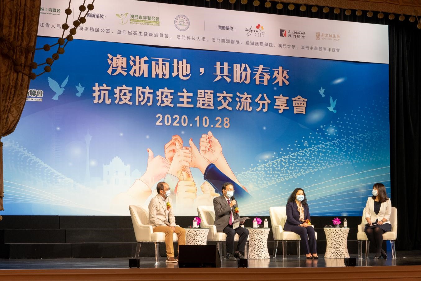 2020年10月28日澳門新口岸區工商聯會主辦,澳門青年聯合會、澳門杭州聯誼會協辦,“澳浙兩地,共盼春來”——抗疫防疫主題交流分享會舉行,邀請澳門衛生局代表,醫護、科研及施援人員主講。