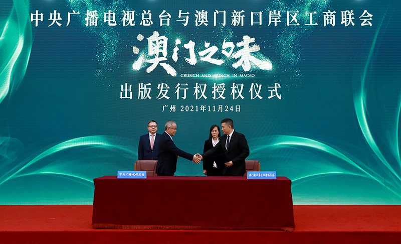 启播仪式上,总台与澳门新口岸区工商联会会长胡达忠签署了《音像制品、图书出版发布许可证书》。总台授权澳广视播出大型4K纪录片《澳门之味》,并配套发行相关图书、音像制品和文创产品等。中央广播电视总台编务会议成员姜文波、彭健明、王晓真,总台和澳门特别行政区、澳门中联办等相关部门负责人等参加活动。