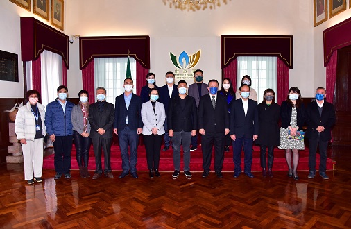 澳门中小企业发展联盟理事长胡达忠及监事长马建章等一行,于一月十二日拜访市政署,市政管理委员会主席戴祖义、副主席柯岚、市政管理委员会委员吴秀虹、杜淑仪等出席。